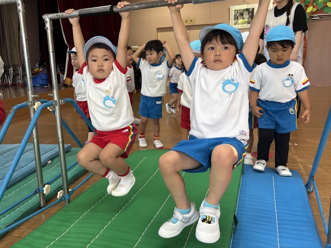 運動会では組体操にも挑戦します。また、卒園するまでに逆上がりができるようになることを目標としています。