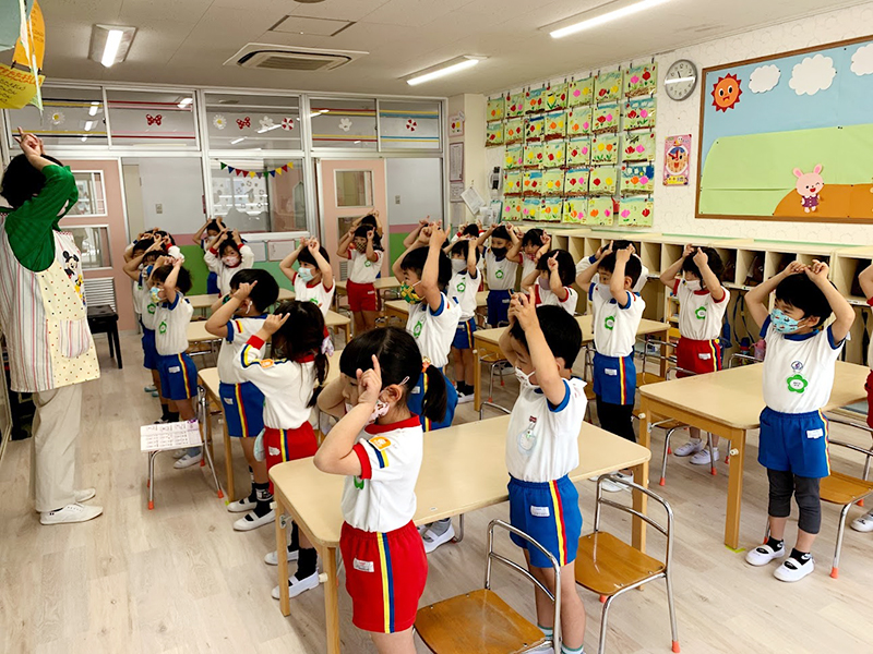 簡単な歌や身近な単語を使いながら、英語と触れ合うことで子どもたちは楽しく参加しています。